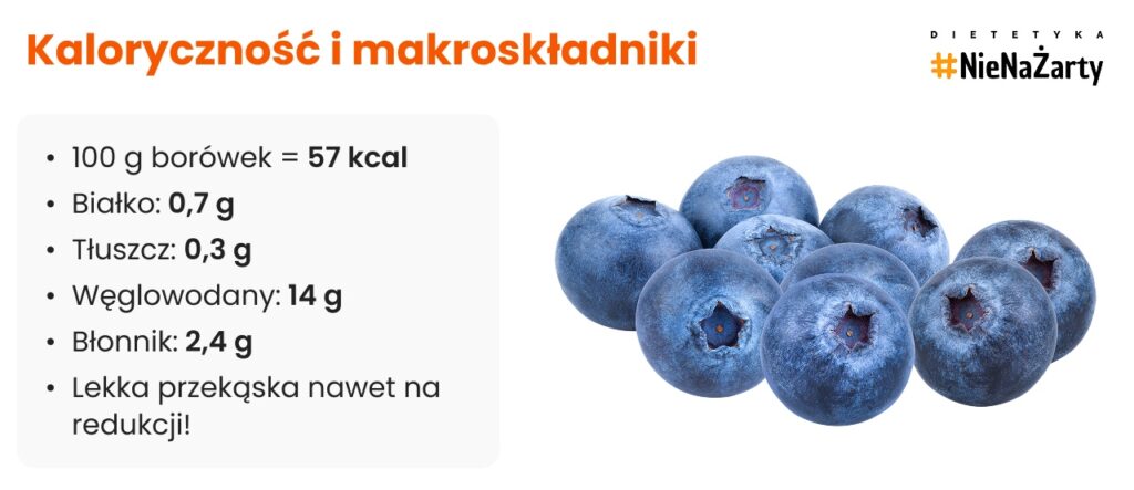 Indeks glikemiczny (IG): około 45, a ładunek glikemiczny dla 50 g owoców to tylko 5. Oznacza to, że borówki nie powodują gwałtownych skoków cukru i świetnie sprawdzą się nawet w diecie osób z insulinoopornością czy cukrzycą.