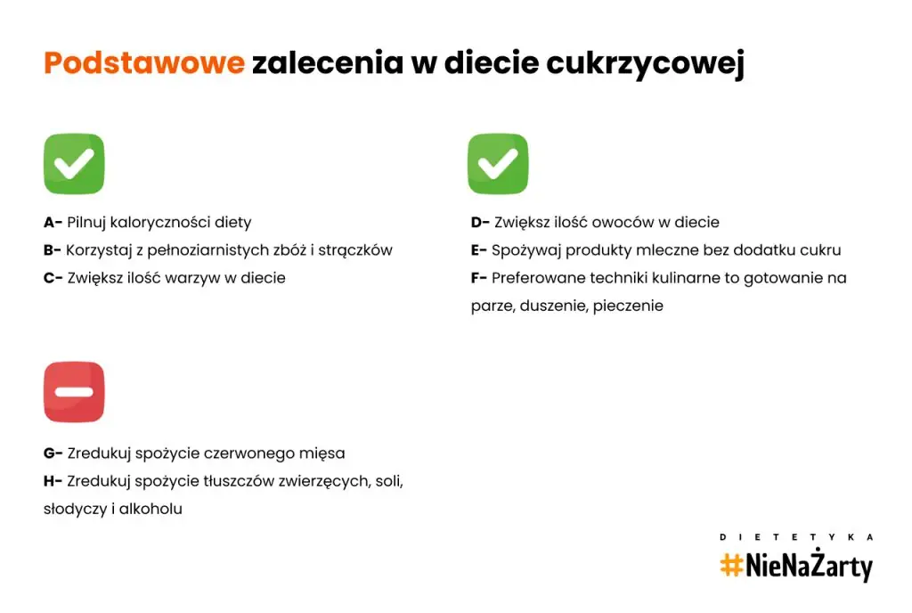 Zalecenia dla diety cukrzycowej prezentują się następująco [1]: