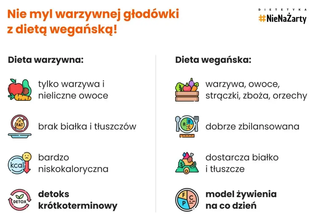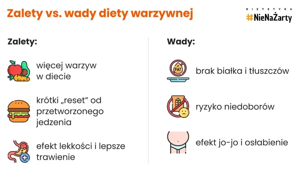 - Dieta warzywna = tymczasowy, niskokaloryczny detoks bez bilansu składników odżywczych.
