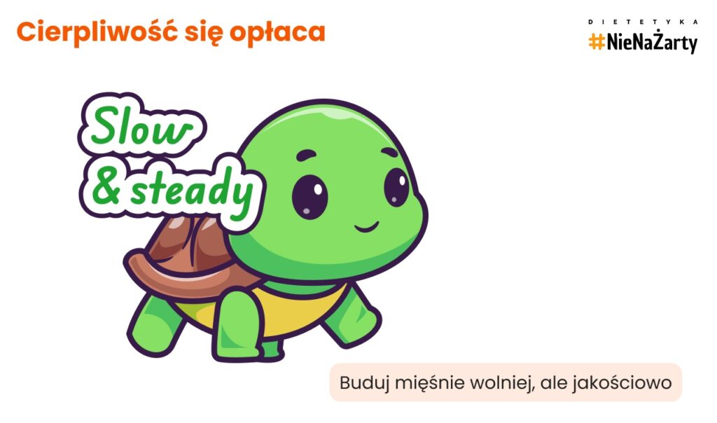 - Cierpliwość. Lepiej wolniej i czyściej budować mięśnie niż szybko zalewać się tłuszczem.