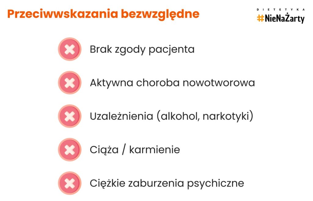 Wiele przeciwwskazań ma charakter czasowy – np. po wyleczeniu wrzodów, ustabilizowaniu depresji czy roku abstynencji od alkoholu pacjent może ponownie zostać rozważony do zabiegu.