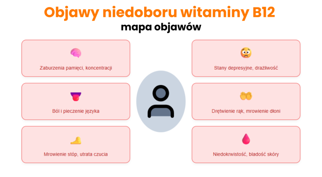 Objawy niedoboru witaminy B12 [4]: